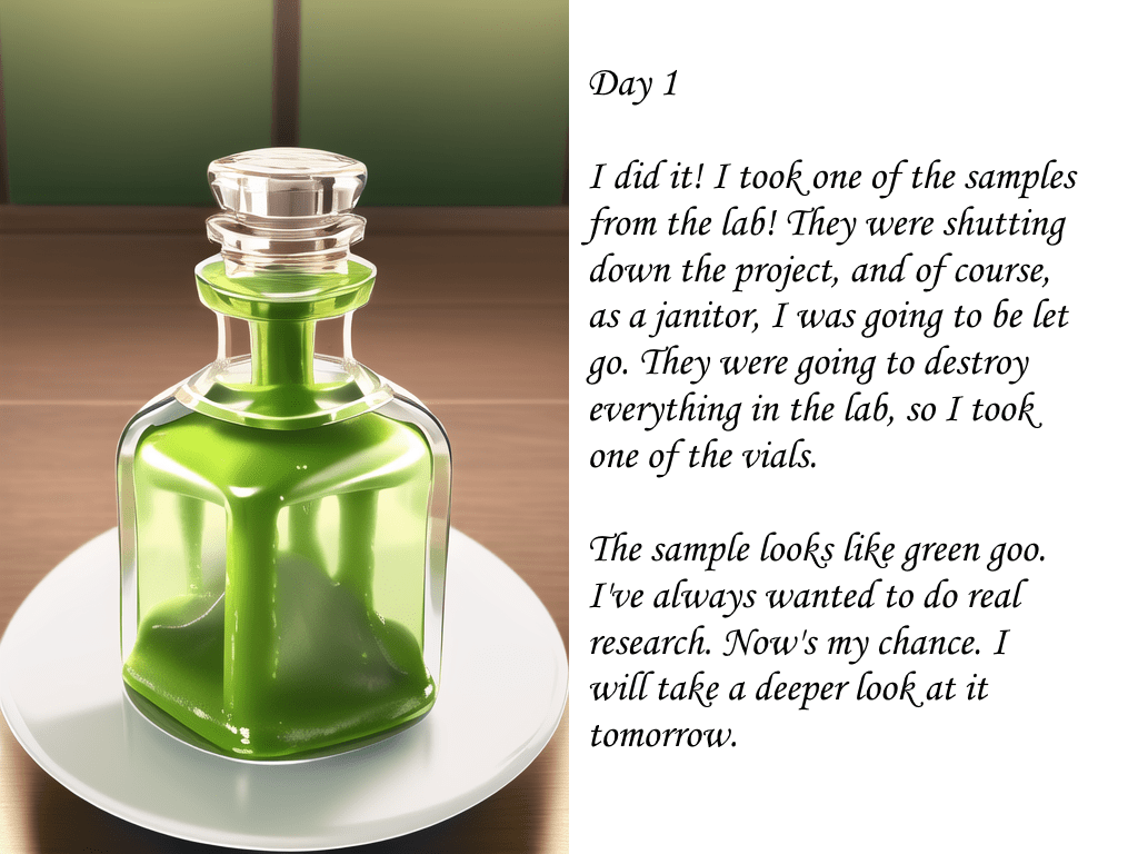 A janitor gets laid off because the lab he works at gets shut down. He steals a sample of slime the scientists were working on and decides to run experiments of his own.