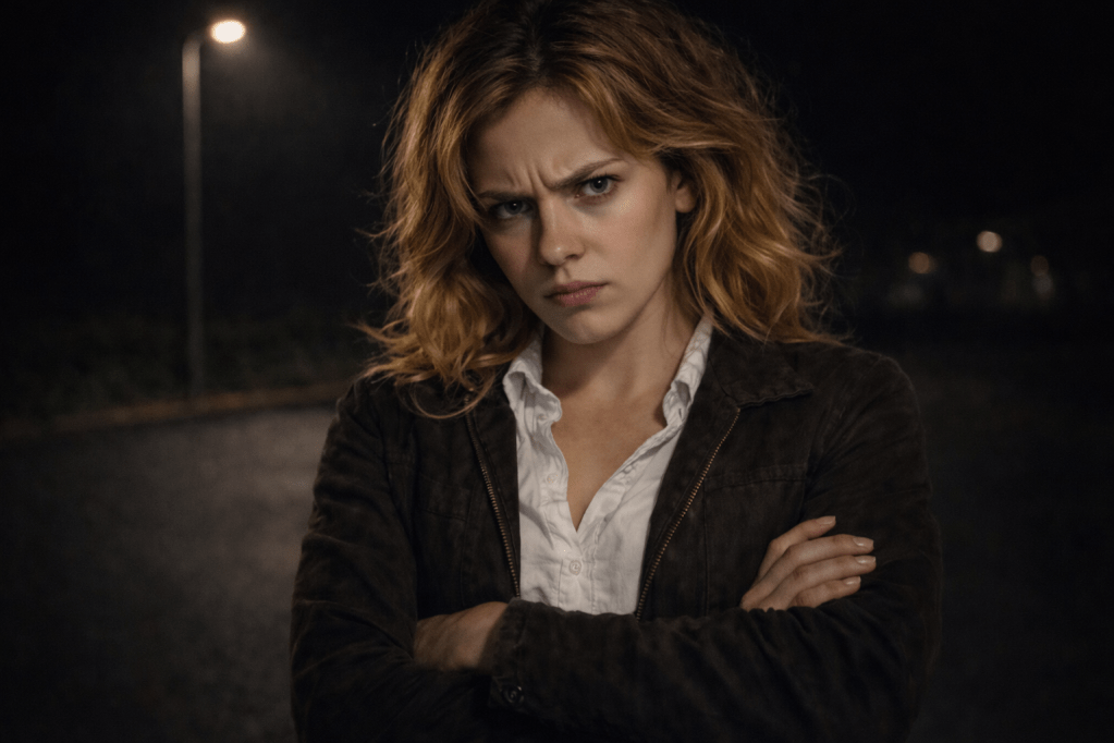 “I should go,” she says finally. “I’ll… figure something out. Call a doctor. Or a priest. Or a very progressive lawyer.” She gives a shaky half-laugh that loses strength before it reaches me.
