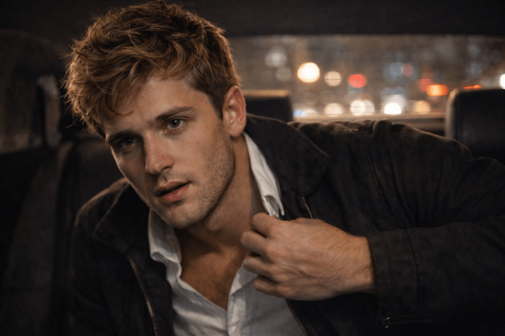 A minute later, my passenger staggers into the alley light like a newborn deer in business casual. Early twenties. Dirty-blond hair. Crisp button-down that costs more than my weekly gas bill. The whole outfit radiates generational wealth and mild parental disappointment.